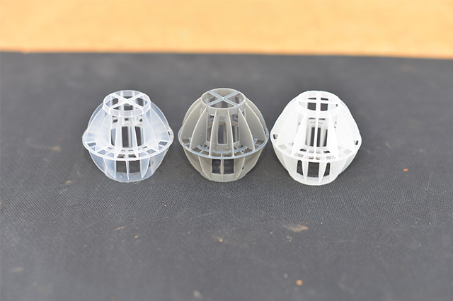 多面空心球中間鏤空結(jié)構(gòu)形成空隙大,不易被阻塞的特性。這種結(jié)構(gòu)在空氣洗滌、廢氣吸收、灰塵過濾等廢氣處理工程方面應(yīng)用,具有處理風(fēng)量大、阻力小的特點。由于多面空心球的空隙中有較高的滯液量,可使塔內(nèi)液體停留時間長,從而增加了氣體與液體的接觸面積和接觸時間,便廢氣得到充分吸收處理。
